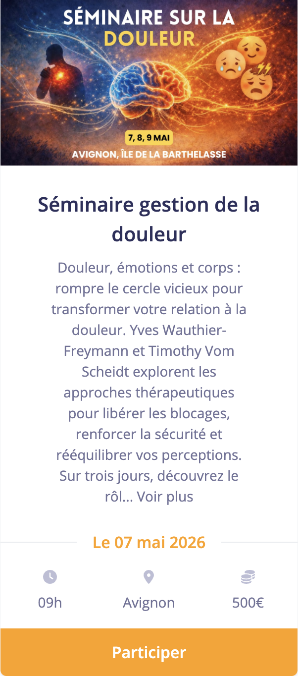 Yves Wauthier-Freymann est psychothérapeute, formateur, superviseur, sexologue, spécialisé dans les traumas complexes, les phobies et les troubles de l’attachement. Il s’occupe également de coaching sportif et de Life coaching. Il intervient depuis près de 20 ans en tant que formateur, superviseur ou thérapeute au sein des Institutions chargées du handicap mental, physique avec ou sans maladie mentale (double diagnostic). Il y suit les résidents et le personnel accompagnant. (Urgences, prévention burn out, post trauma, stabilisation des cas lourds, etc.)